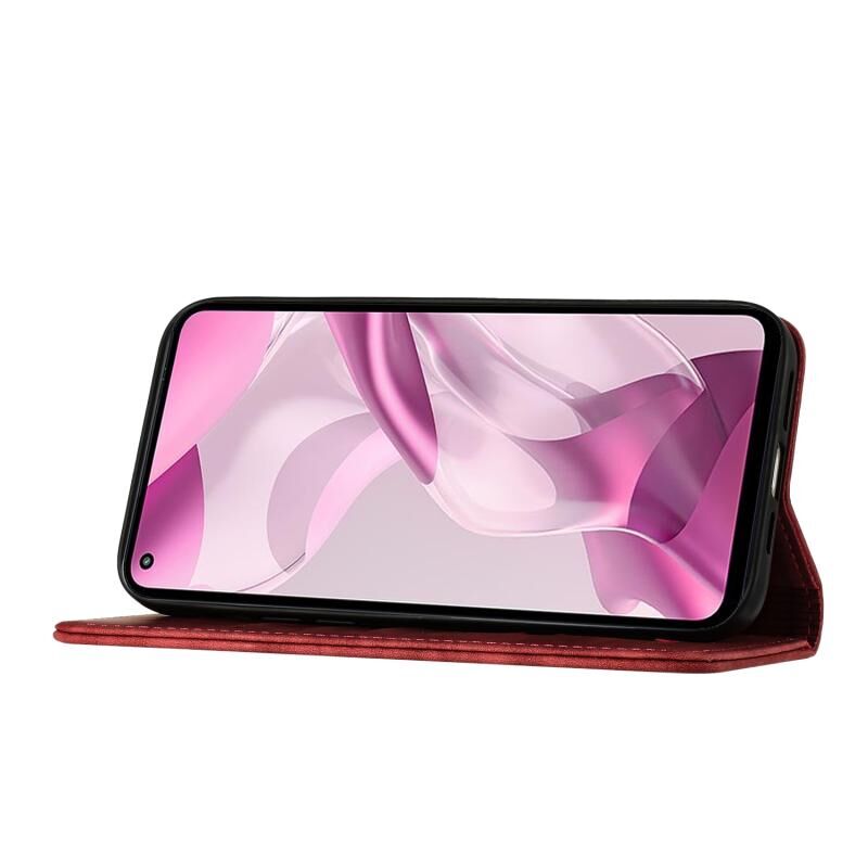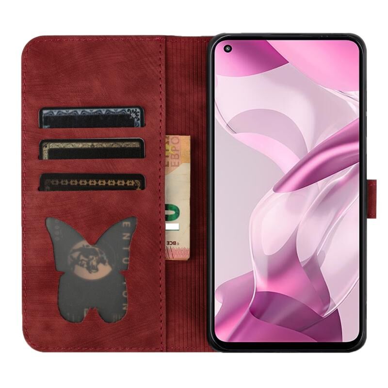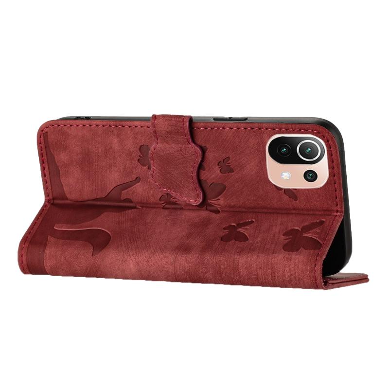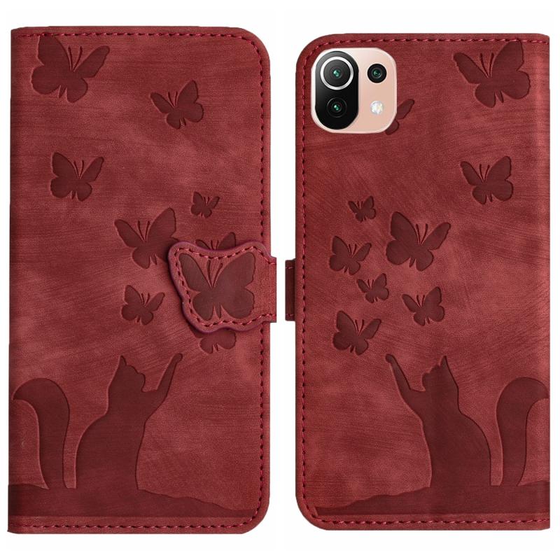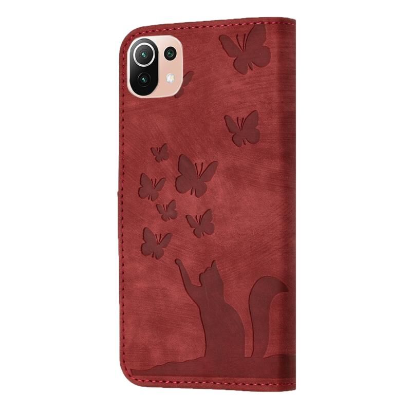 Θήκη δερμάτινη flip με σχέδιο πεταλούδας και γάτας για Xiaomi Mi 11 Lite (Κόκκινο)
