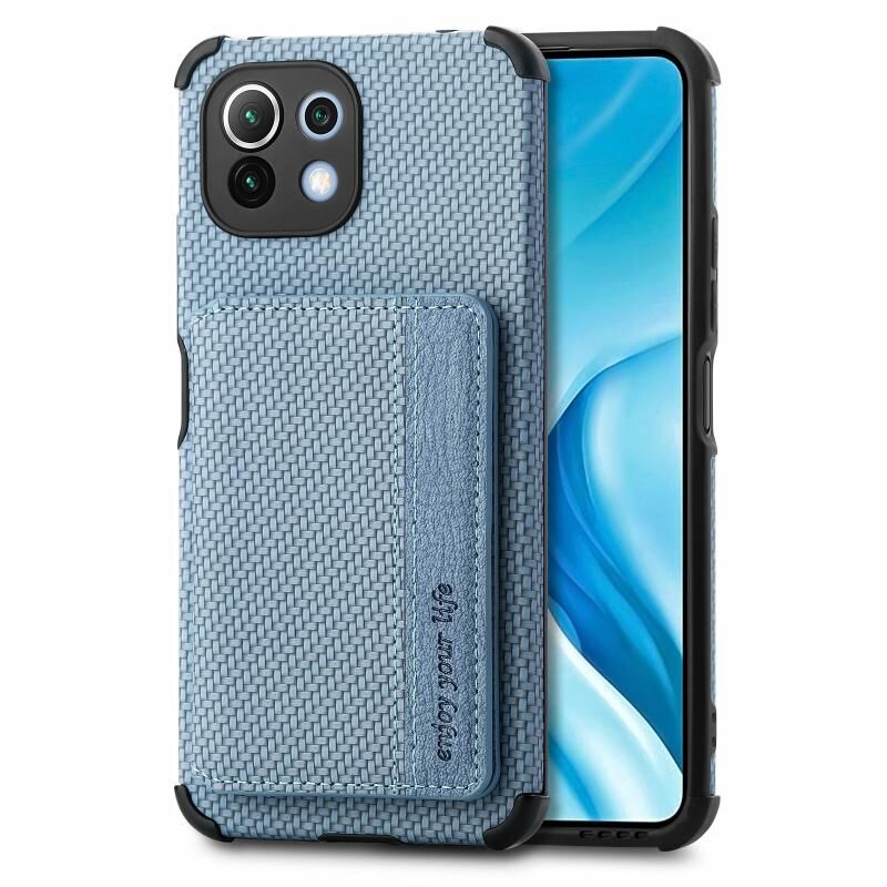 Για Xiaomi Mi 11 Lite Carbon Fiber Μαγνητική τσάντα κάρτας TPU + PU Shockproof Back Cover Case με θήκη & υποδοχή κάρτας & πλαίσιο φωτογραφιών (μπλε)
