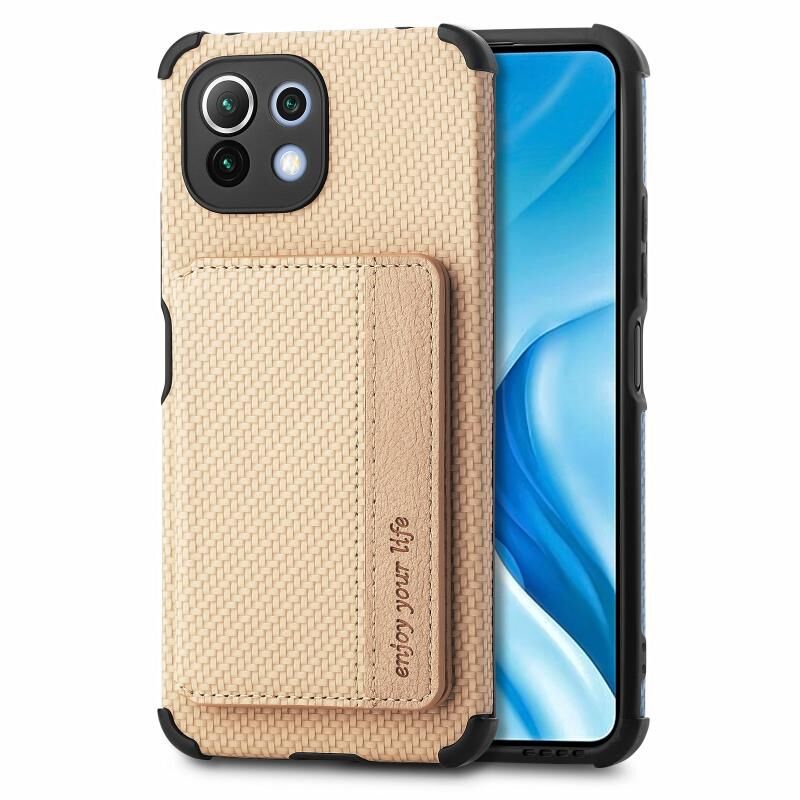Για Xiaomi Mi 11 Lite Carbon Fiber Μαγνητική τσάντα κάρτας TPU + PU Shockproof Back Cover Case με θήκη & υποδοχή κάρτας & πλαίσιο φωτογραφιών (χρυσό)