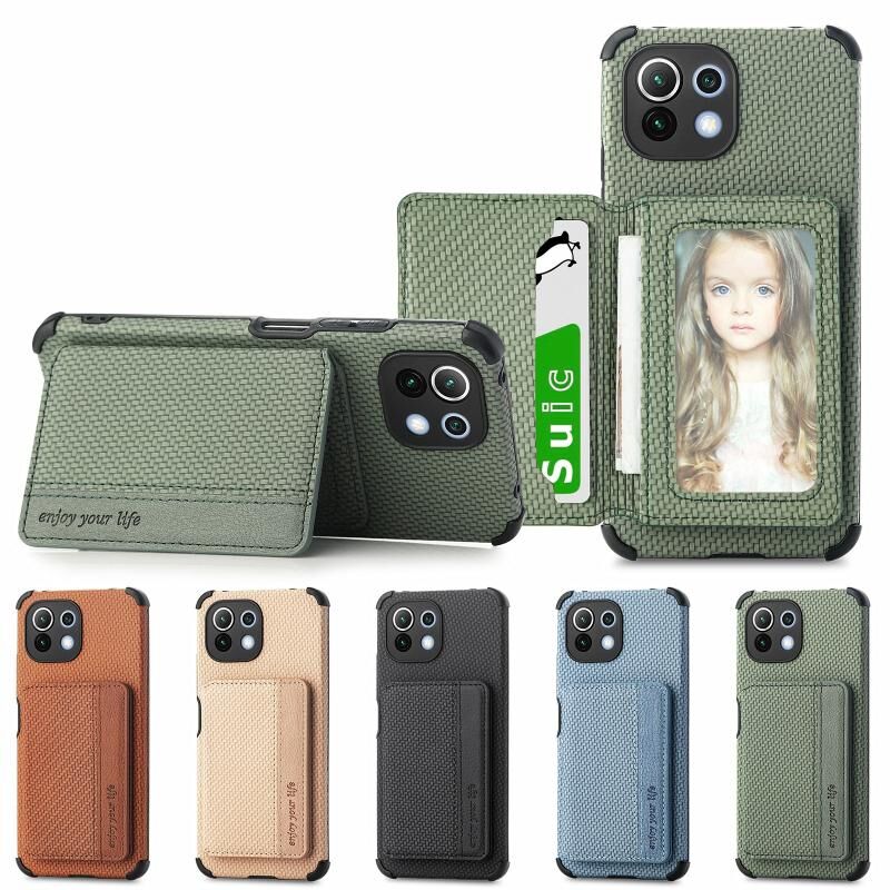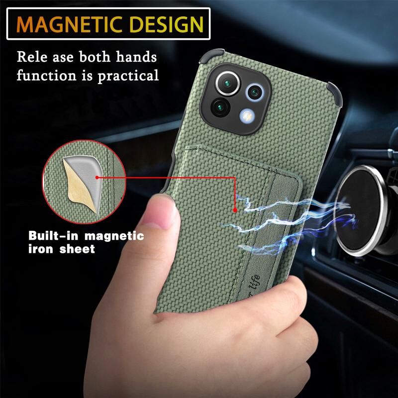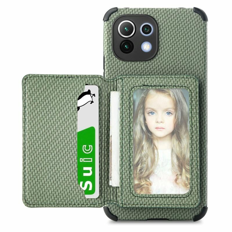 Για Xiaomi Mi 11 Lite Carbon Fiber Μαγνητική τσάντα κάρτας TPU + PU Shockproof Back Cover Case με θήκη & υποδοχή κάρτας & πλαίσιο φωτογραφιών (πράσινο)