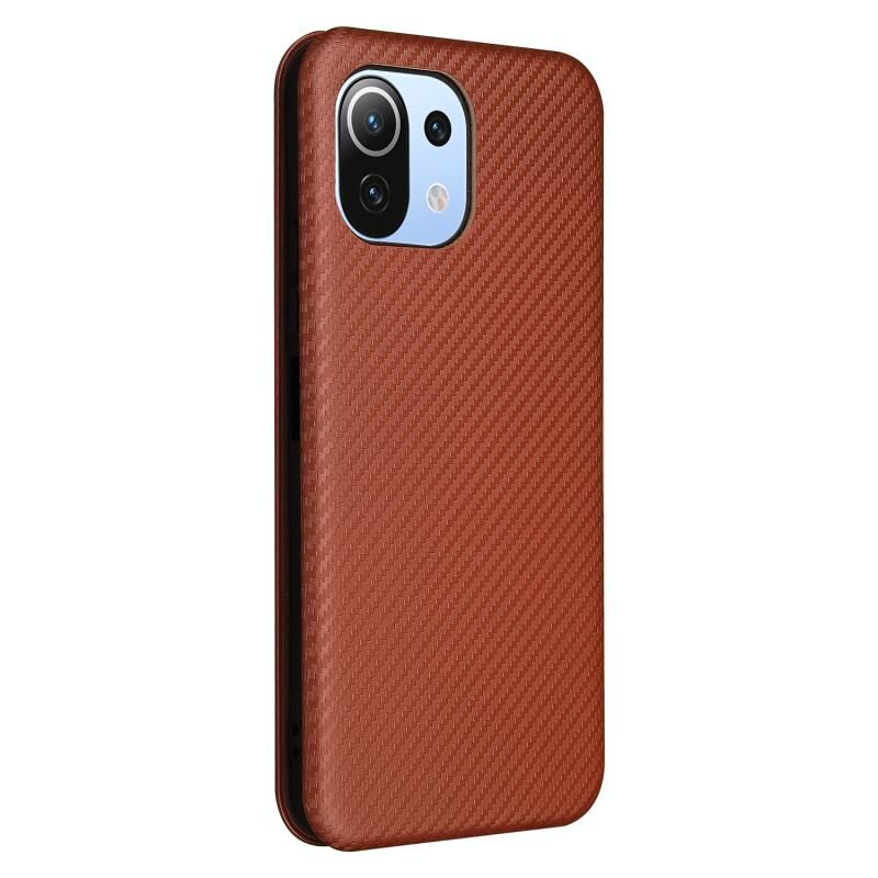 Για Xiaomi Mi 11 Lite Carbon Fiber Texture Horizontal Flip TPU + PC + PU Leather Case με υποδοχή κάρτας (Καφέ)