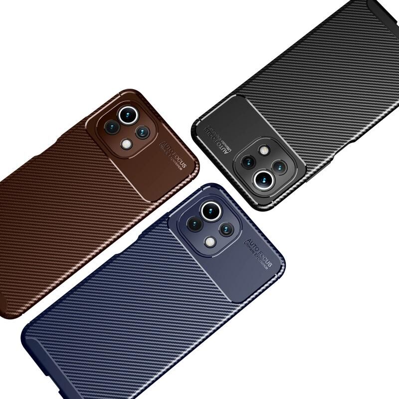 Για Xiaomi Mi 11 Lite Θήκη TPU με υφή ανθρακονημάτων για αντικραδασμική προστασία (καφέ)