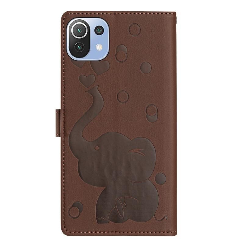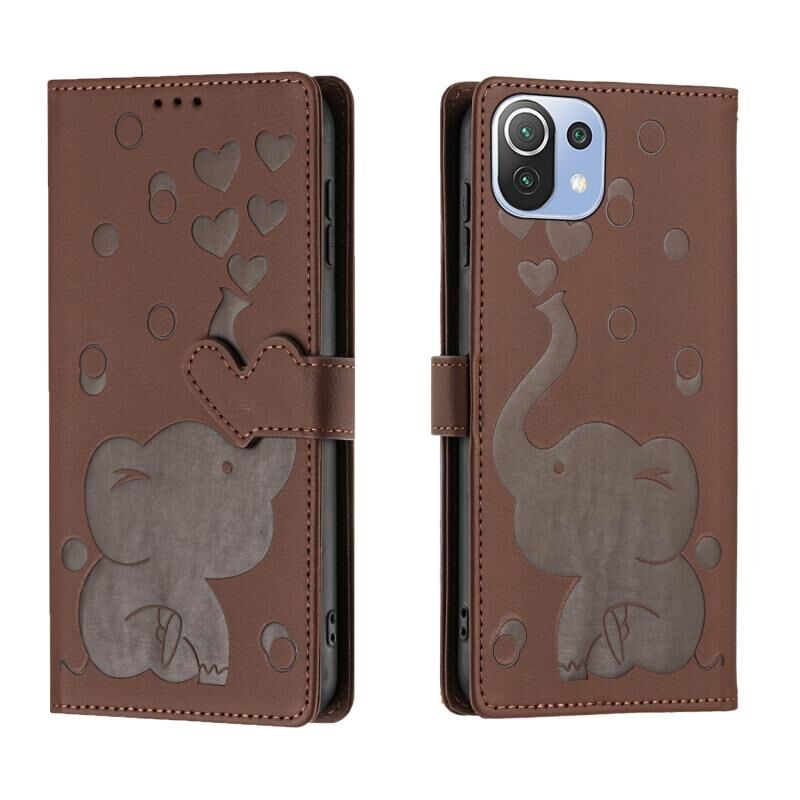 Θήκη τηλεφώνου δερμάτινη με ανάγλυφο σχέδιο καρτούν ελέφαντα για Xiaomi Mi 11 Lite (Μπλε)