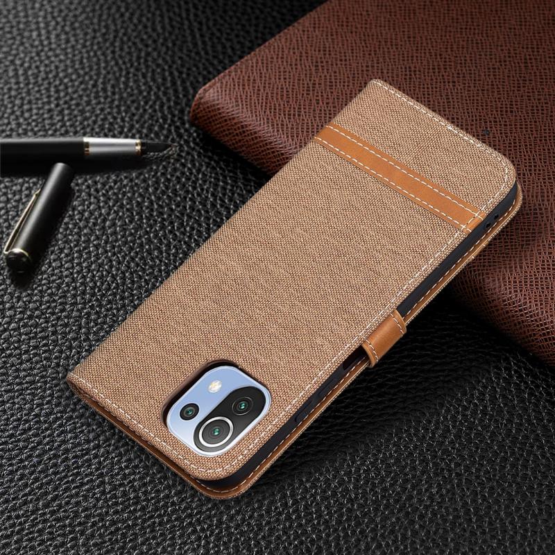 For Xiaomi Mi 11 Lite Color Matching Denim Texture Horizontal Flip Leather Case with Holder & Card Slots & Wallet & Lanyard(Brown)