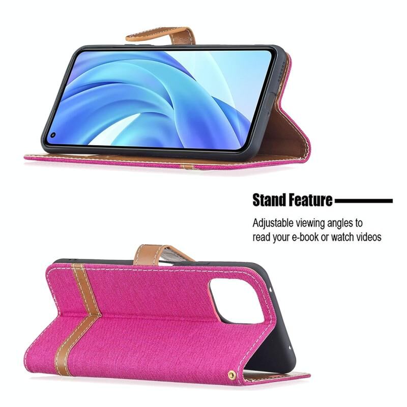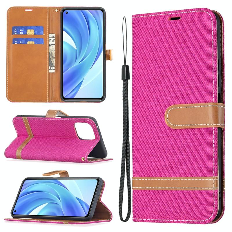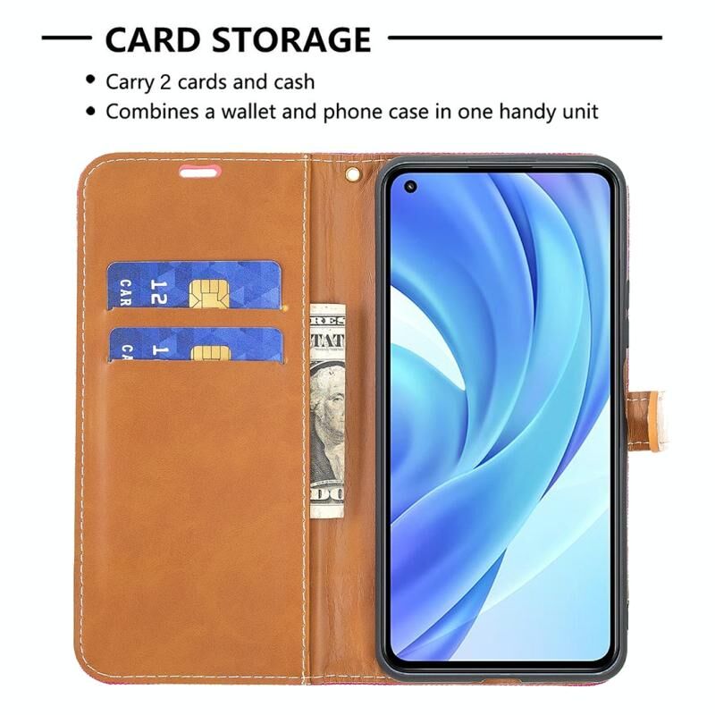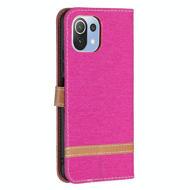 Θήκη δέρματος οριζόντιας αναδίπλωσης για Xiaomi Mi 11 Lite με υφή τζιν, αντιστοίχιση χρωμάτων, με βάση στήριξης, θήκες καρτών, πορτοφόλι & λουρί (Πράσινο)