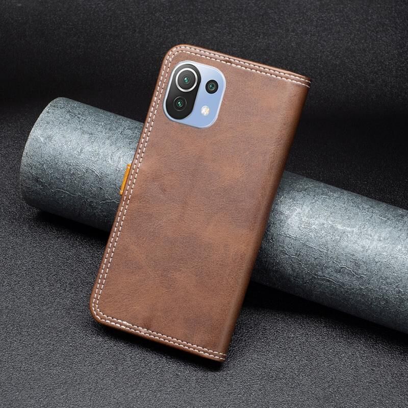 Θήκη τηλεφώνου δερμάτινη διπλής ραφής για Xiaomi Mi 11 Lite σε μαύρο χρώμα.