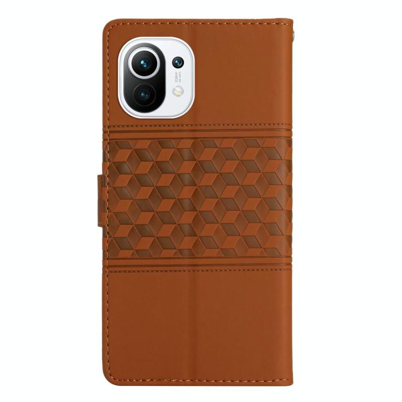 Για Xiaomi Mi 11 Lite Diamond Embossed Skin Feel Δερμάτινη θήκη τηλεφώνου με κορδόνι (καφέ)