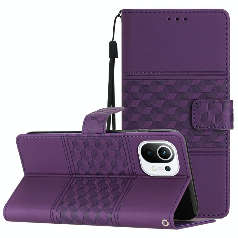 Για Xiaomi Mi 11 Lite Diamond Embossed Skin Feel Δερμάτινη θήκη τηλεφώνου με κορδόνι (μωβ)