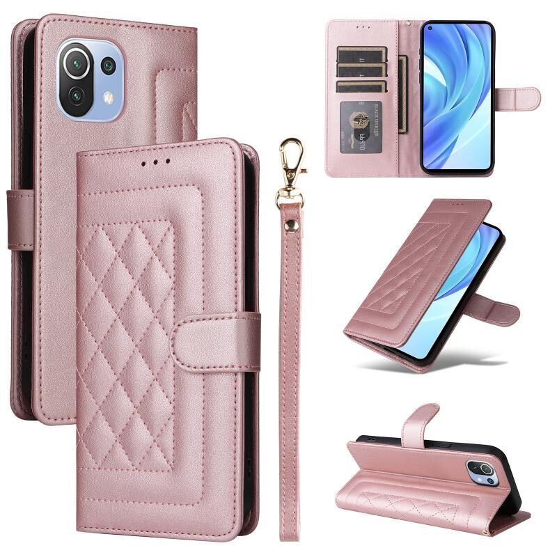 Για Xiaomi Mi 11 Lite Diamond Lattice Leather Flip Phone Case (Rose Gold)
