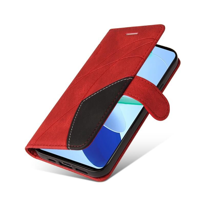 Για Xiaomi Mi 11 Lite Διπλό χρώμα Splicing οριζόντια Flip PU δέρμα υπόθεση με θήκη & υποδοχές καρτών & πορτοφόλι (Κόκκινο)