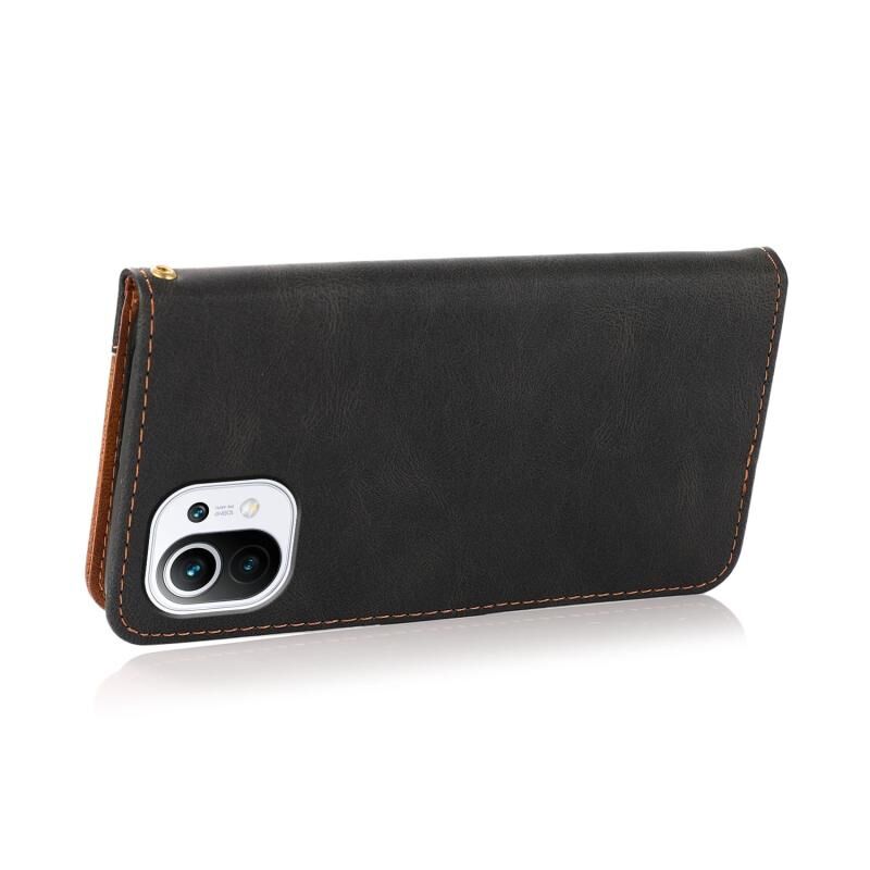 Για Xiaomi Mi 11 Lite Διπλό χρώμα ραφή δερμάτινη θήκη τηλεφώνου (μαύρο καφέ)