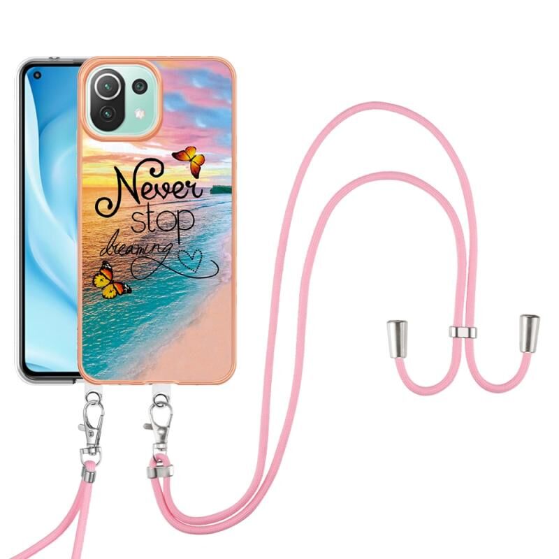 Θήκη κινητού τηλεφώνου Xiaomi Mi 11 Lite Electroplating IMD TPU με κορδόνι (Dream Butterfly)