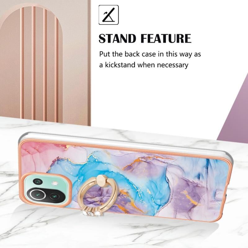 Θήκη τηλεφώνου Xiaomi Mi 11 Lite με ηλεκτρολυτική επιμετάλλωση IMD TPU με δακτύλιο (Ροζ Λέπια)