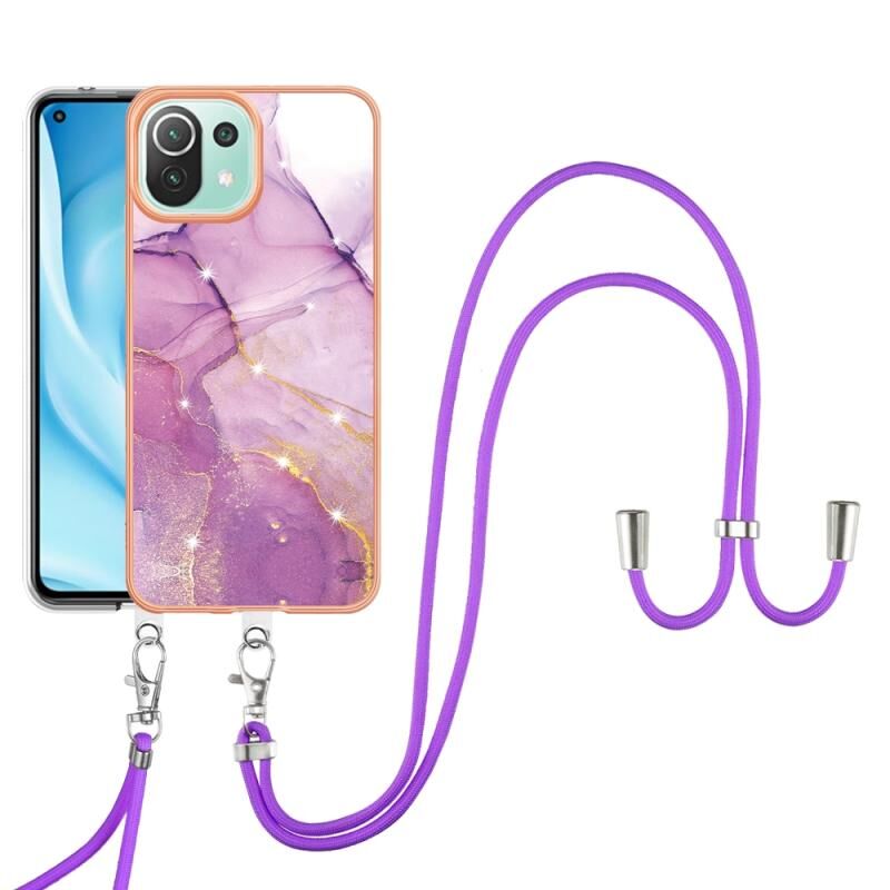 Θήκη τηλεφώνου Xiaomi Mi 11 Lite με επιμετάλλωση, σχέδιο μάρμαρου, διπλής όψης IMD με κορδόνι (Μωβ 001)