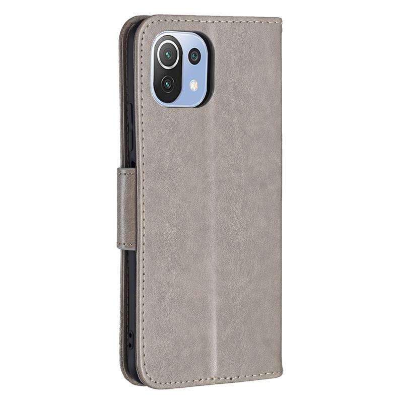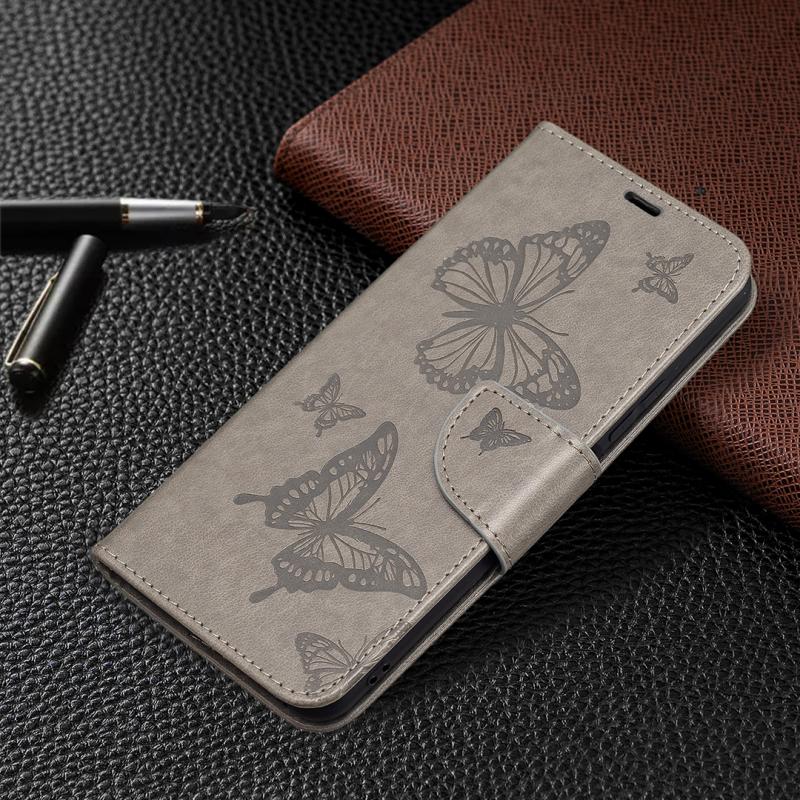 Για Xiaomi Mi 11 Lite Θήκη Embossing με Δύο Πεταλούδες, Οριζόντια, από Δερματίνη PU με Στήριξη, Θήκη Καρτών, Πορτοφόλι & Λουρί (Γκρι)