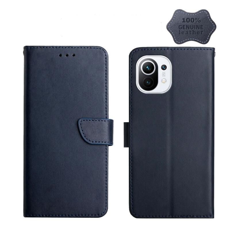 Θήκη τηλεφώνου οριζόντιας αναδίπλωσης από γνήσιο δέρμα για Xiaomi Mi 11 Lite, ανθεκτική στα δακτυλικά αποτυπώματα (Μπλε)