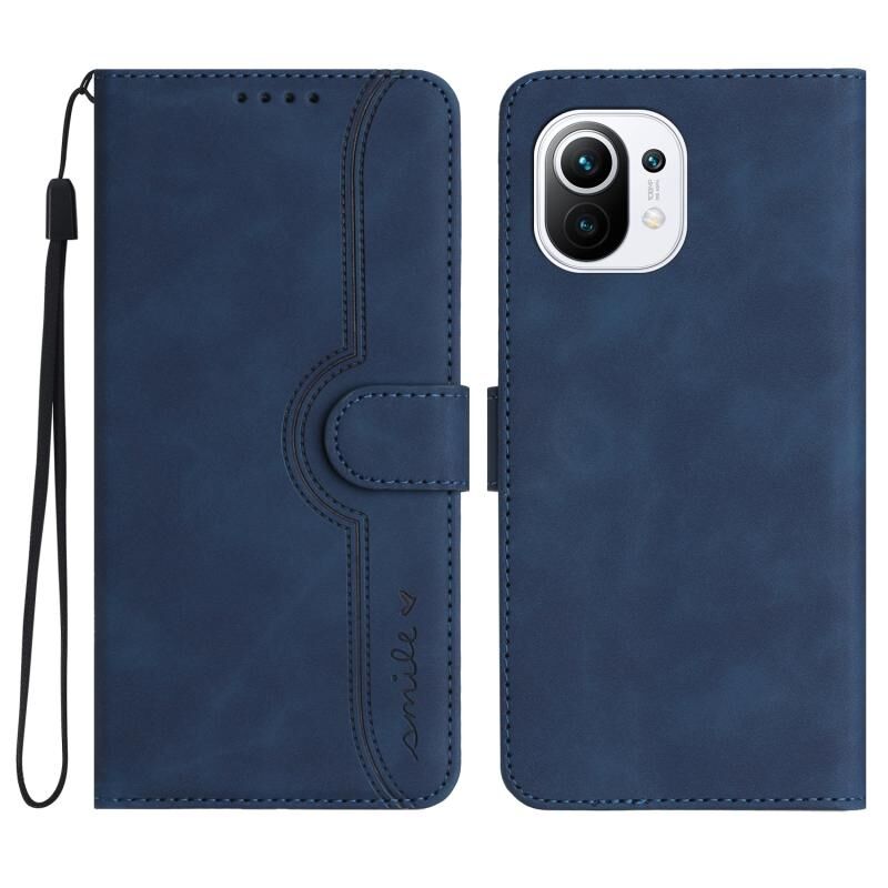 Για Xiaomi Mi 11 Lite καρδιά μοτίβο δέρμα δέρμα αίσθηση υπόθεση τηλεφώνου (Royal Blue)