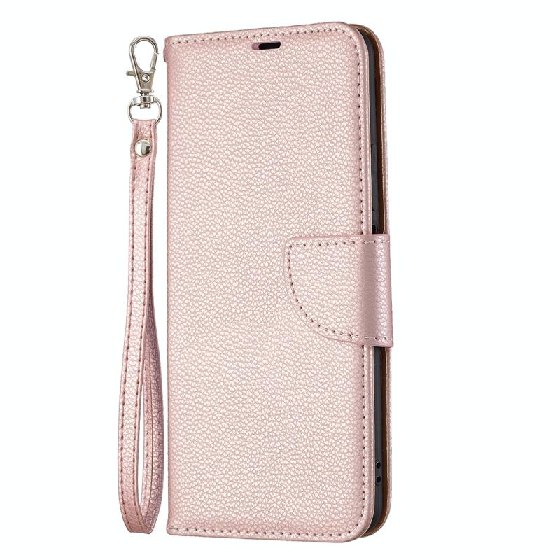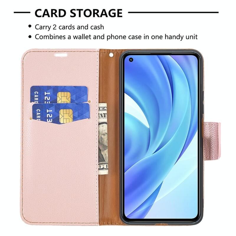 Θήκη δέρματος οριζόντιας αναδίπλωσης με υφή Λίτσι και καθαρό χρώμα για Xiaomi Mi 11 Lite με βάση στήριξης & υποδοχές καρτών & πορτοφόλι & κορδόνι (Γκρι)