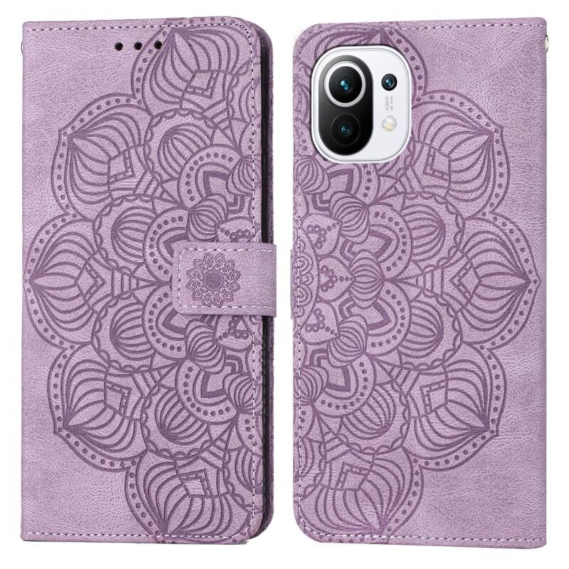 Θήκη τηλεφώνου από δέρμα με ανάγλυφο Mandala για Xiaomi Mi 11 Lite (Μωβ)