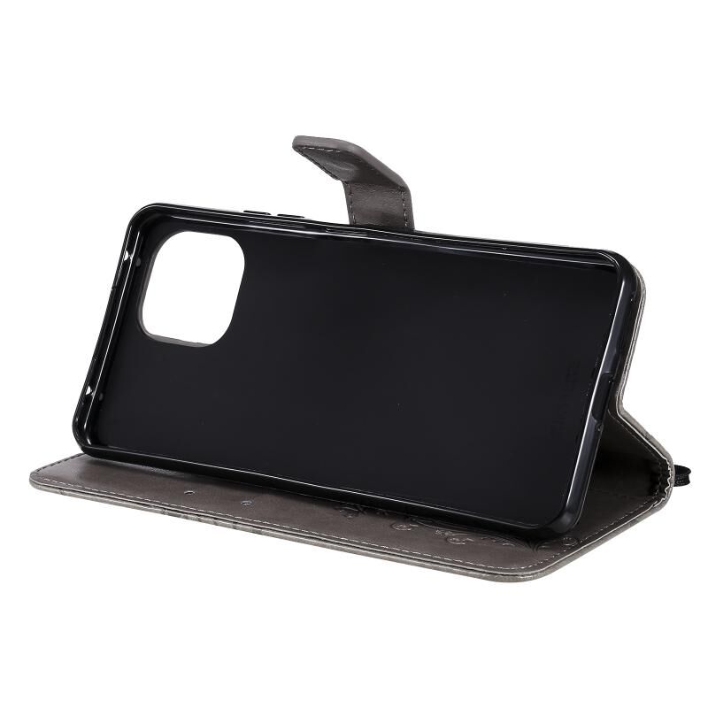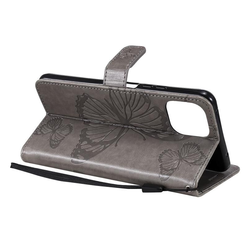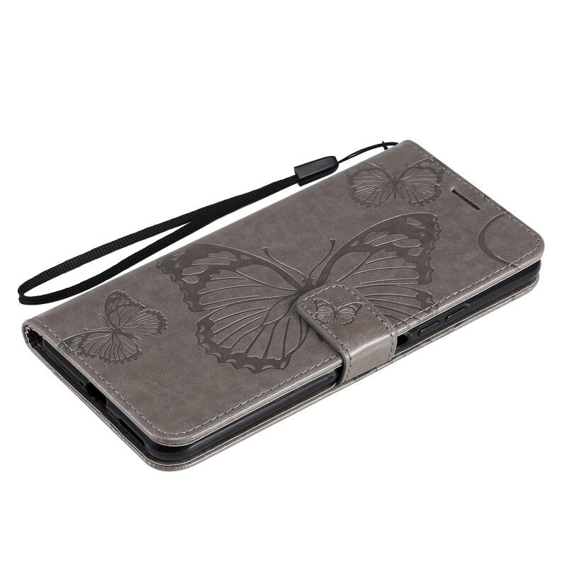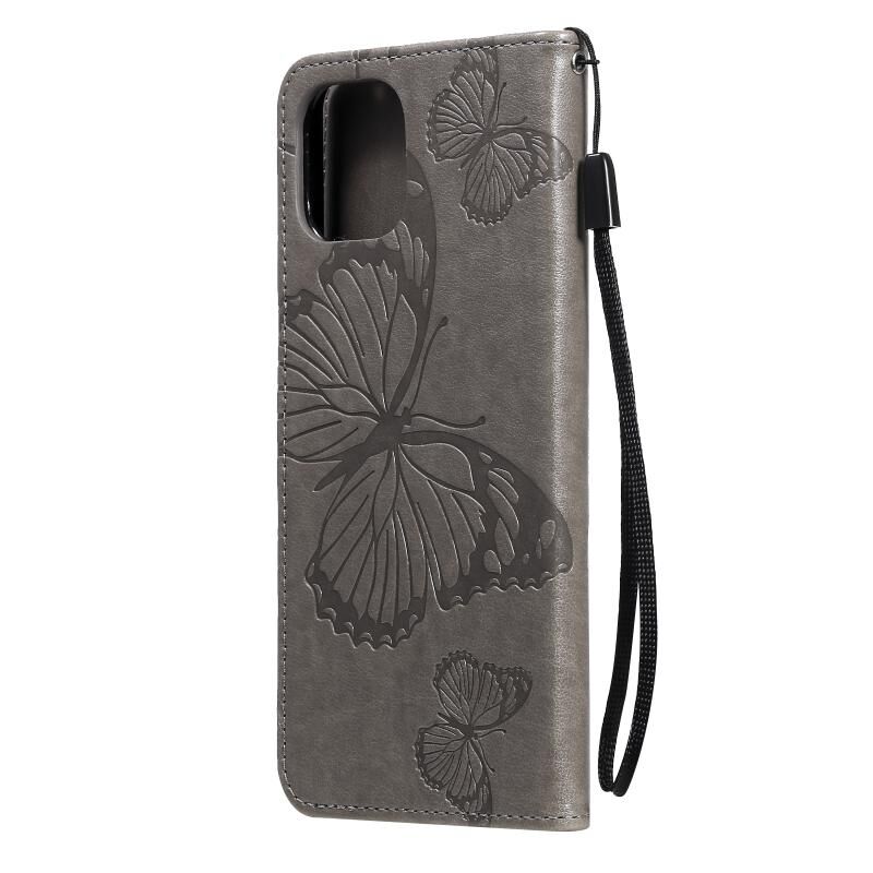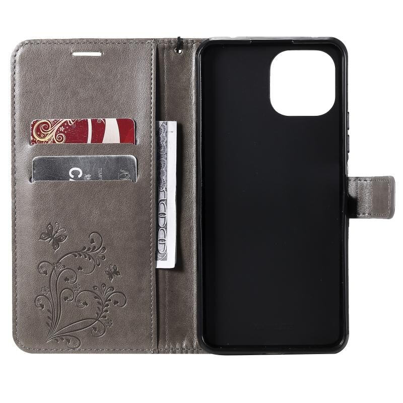 Για Xiaomi Mi 11 Lite Πιεσμένη εκτύπωση πεταλούδα μοτίβο οριζόντια Flip PU δέρμα υπόθεση με κάτοχο & υποδοχές καρτών & πορτοφόλι & κορδόνι (γκρι)
