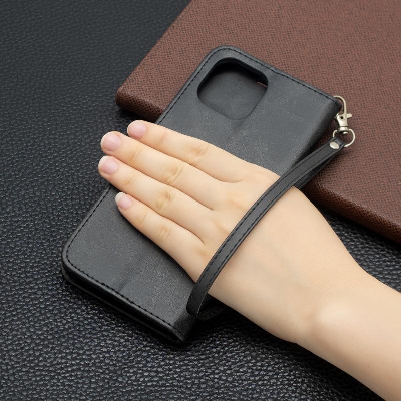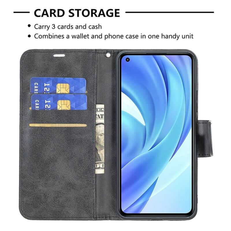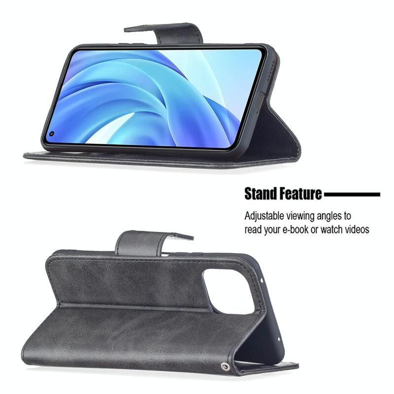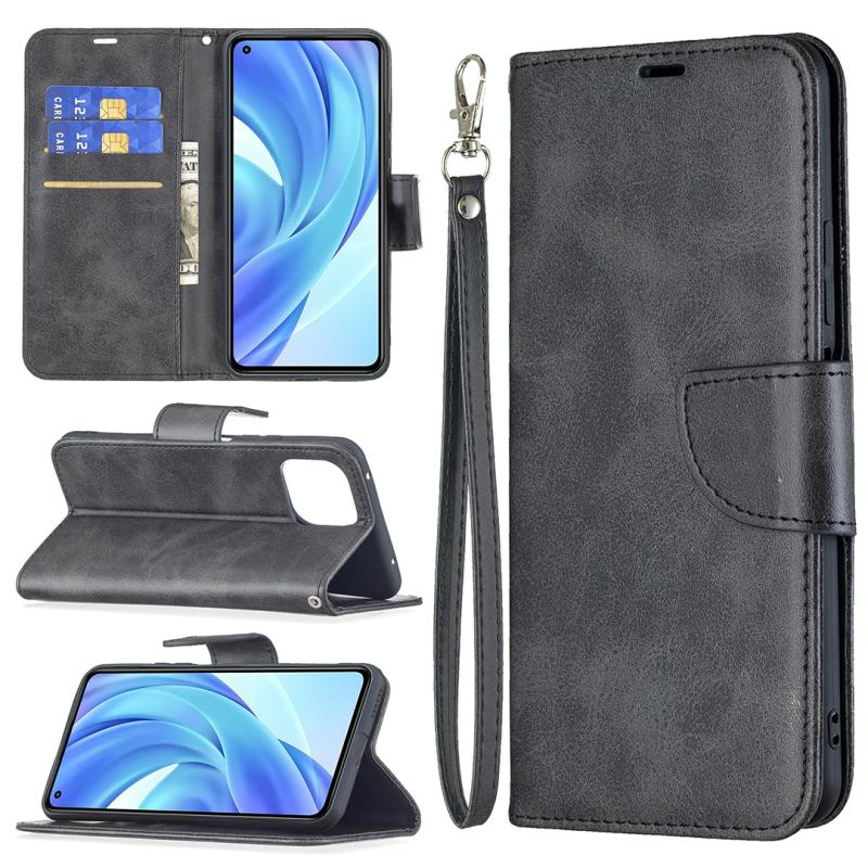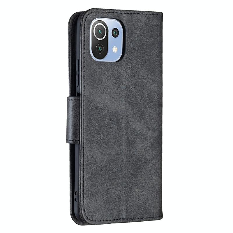 Θήκη για Xiaomi Mi 11 Lite με υφή retro δέρματος αρνιού, απλό χρώμα, οριζόντια αναδιπλούμενη από δερματίνη PU με βάση στήριξης & υποδοχές καρτών & πορτοφόλι & κορδόνι (Μαύρο)