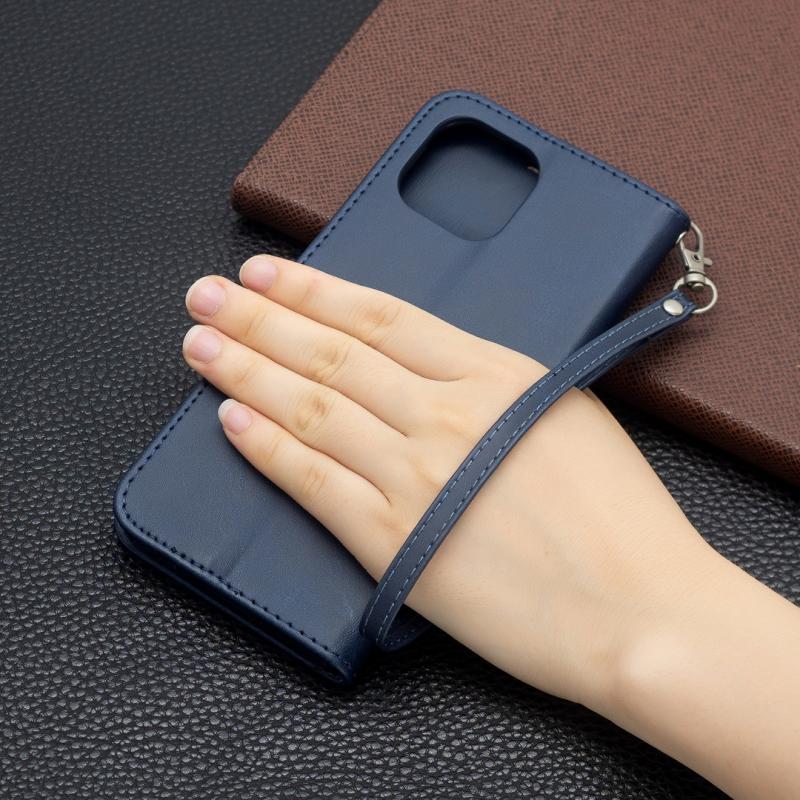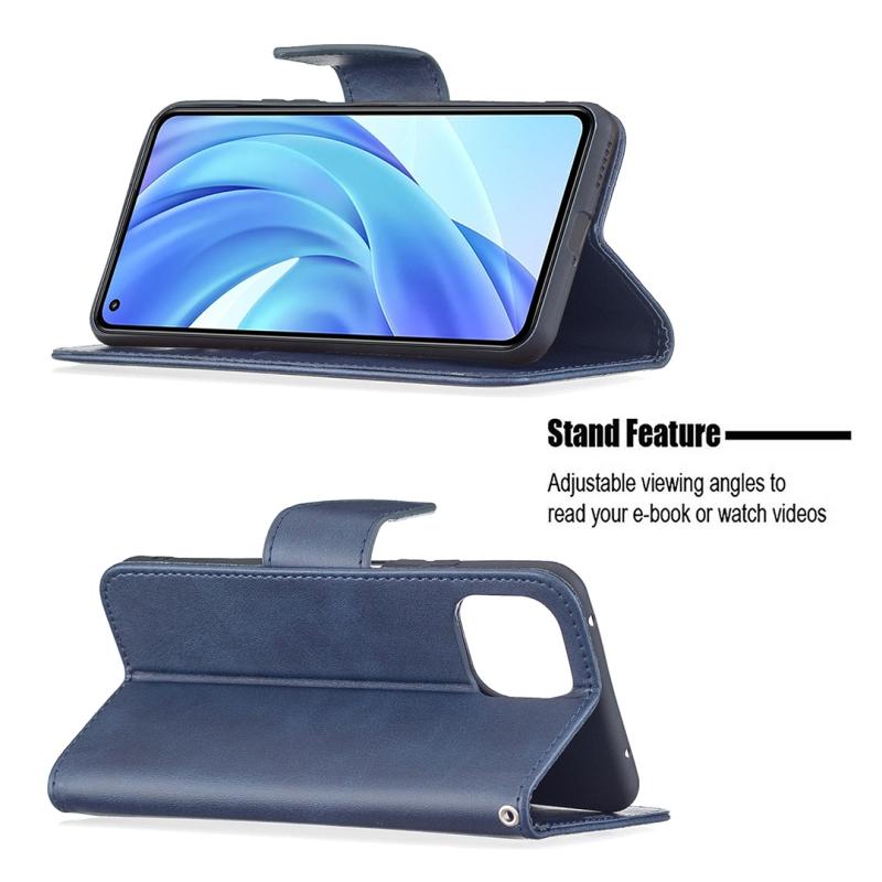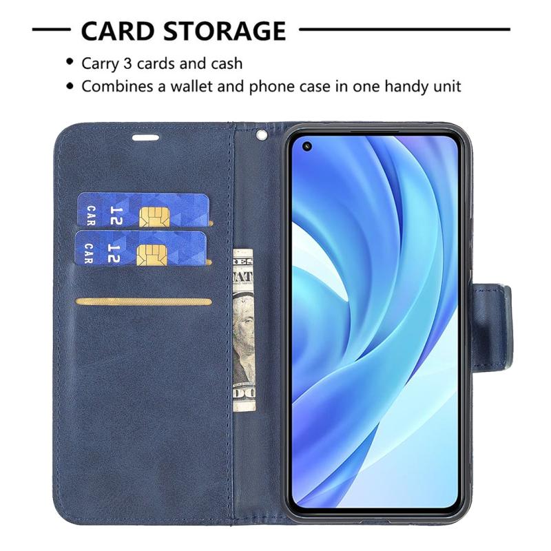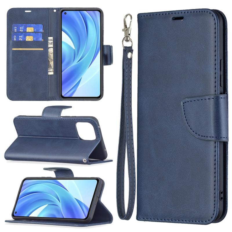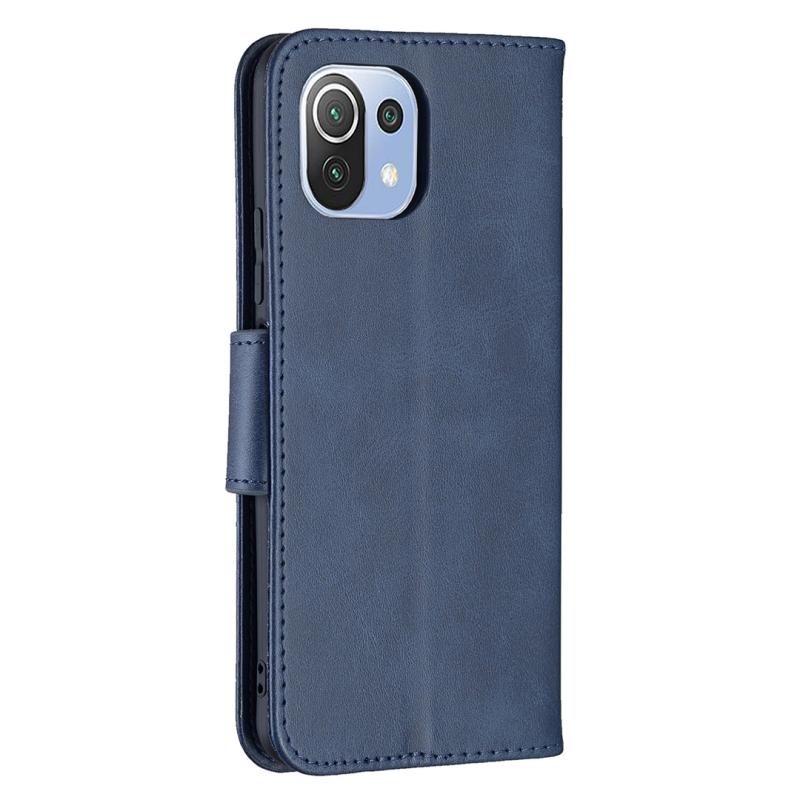 Θήκη για Xiaomi Mi 11 Lite με υφή retro δέρματος αρνιού, απλό χρώμα, οριζόντια αναδιπλούμενη από δερματίνη PU με βάση στήριξης & υποδοχές καρτών & πορτοφόλι & κορδόνι (Μπλε)