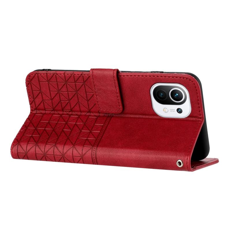 Θήκη δερμάτινη με κορδόνι για Xiaomi Mi 11 Lite - Ρομβικό σχέδιο (Κόκκινο)
