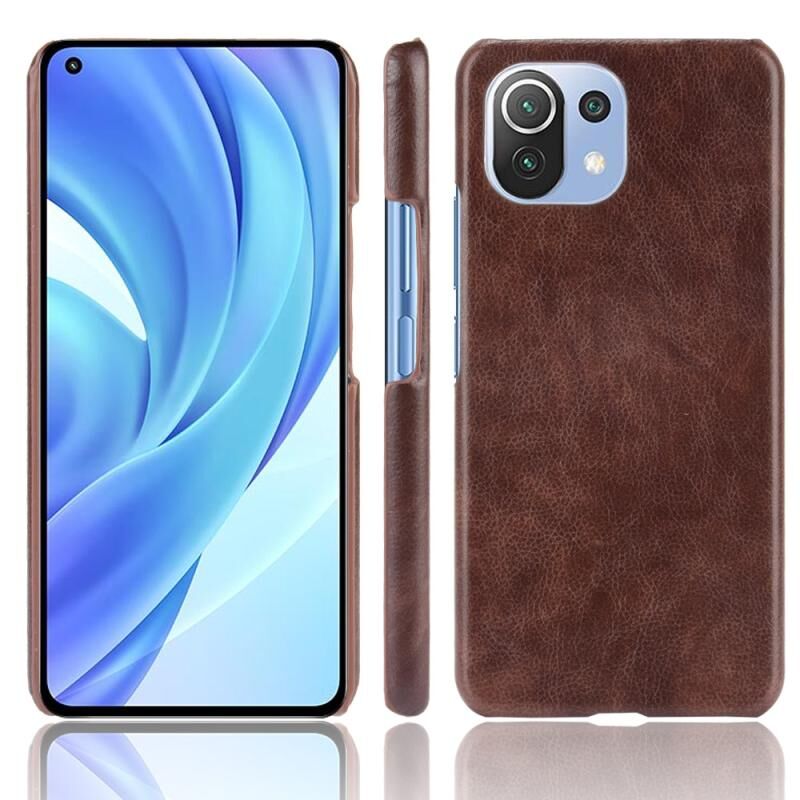 Για Xiaomi Mi 11 Lite Αδιάβροχη θήκη PC + PU με υφή Litchi (καφέ)