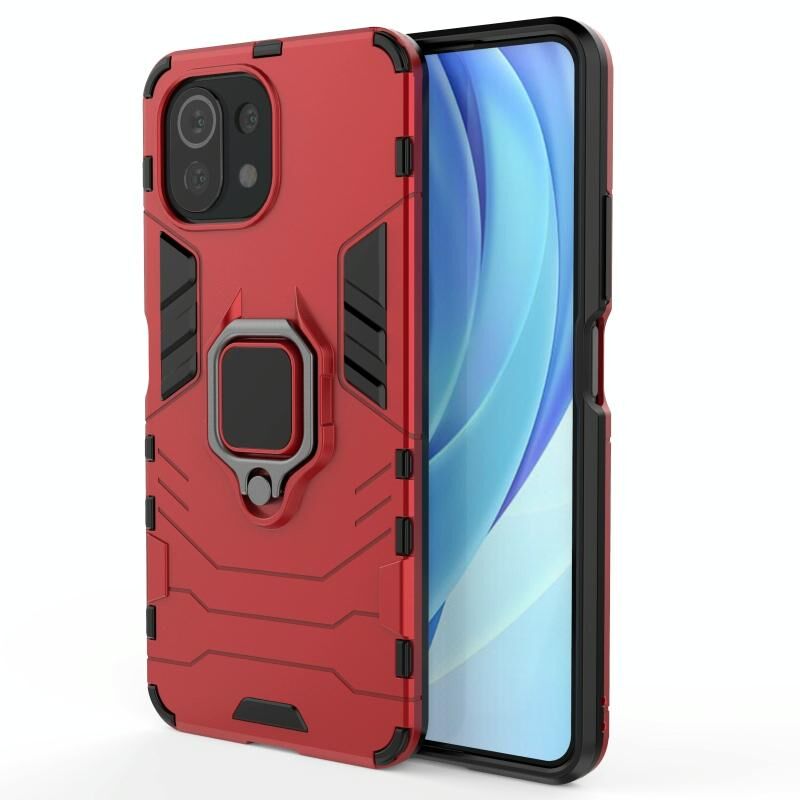 Για Xiaomi Mi 11 Lite Αδιάβροχη θήκη προστασίας PC + TPU με μαγνητικό δακτύλιο (κόκκινο)