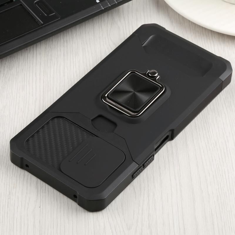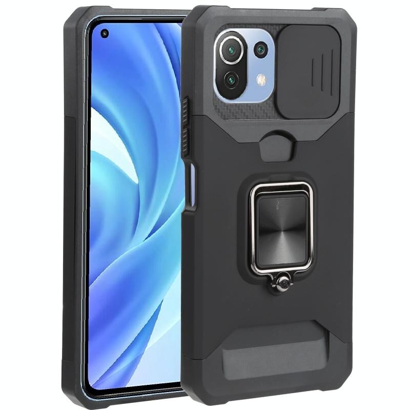 Για Xiaomi Mi 11 Lite συρόμενη κάμερα Cover Design PC + TPU Shockproof υπόθεση τηλεφώνου με θήκη δαχτυλίδι & υποδοχή κάρτας (Μαύρο)