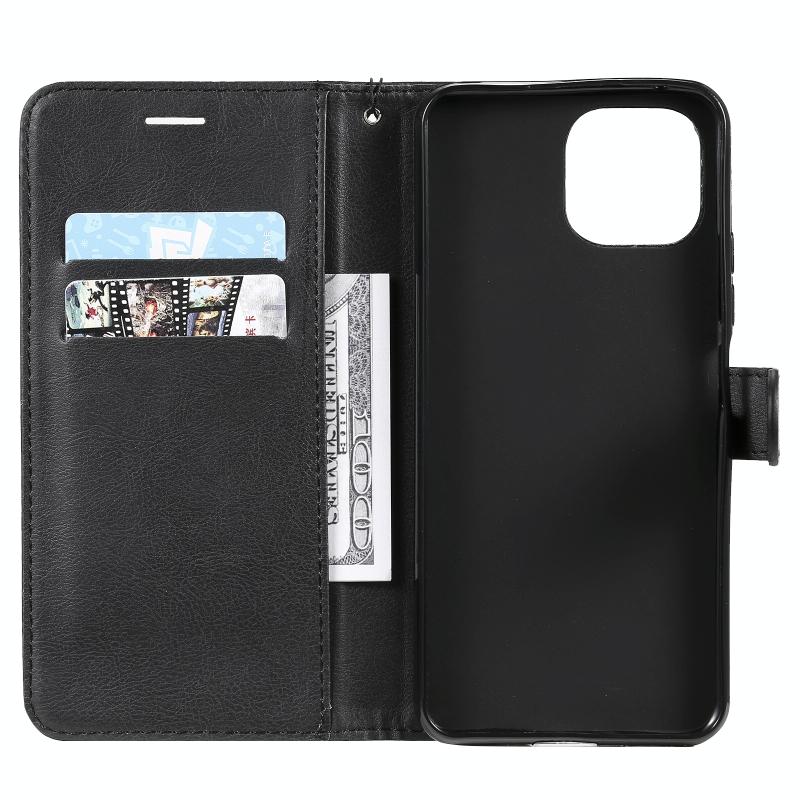 Θήκη δέρματος οριζόντιας αναδίπλωσης για Xiaomi Mi 11 Lite, μονόχρωμη, με βάση στήριξης, θήκες καρτών, πορτοφόλι, κορνίζα φωτογραφιών & λουρί (Χρυσό Ρόδι)