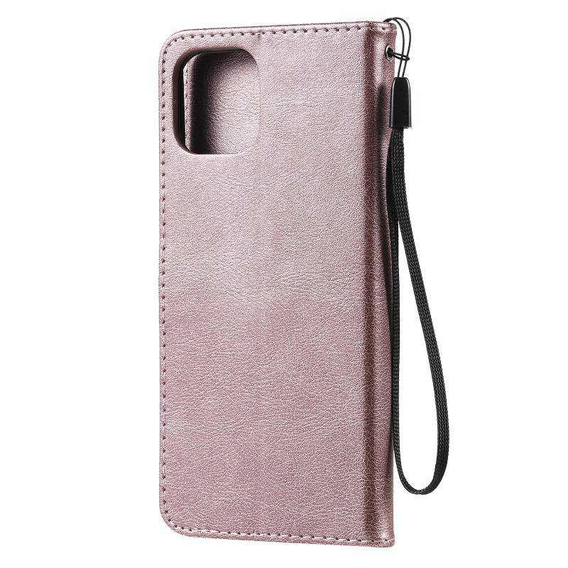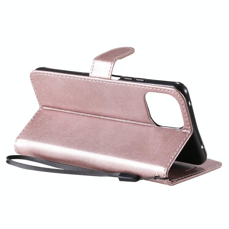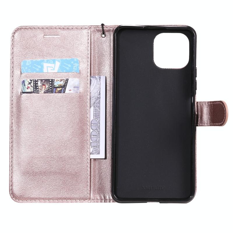 Θήκη δέρματος οριζόντιας αναδίπλωσης για Xiaomi Mi 11 Lite, μονόχρωμη, με βάση στήριξης, θήκες καρτών, πορτοφόλι, κορνίζα φωτογραφιών & λουρί (Χρυσό Ρόδι)