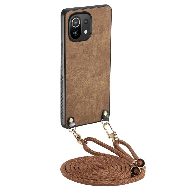 Για Xiaomi Mi 11 Lite εκλεκτής ποιότητας δέρμα PC πίσω κάλυμμα τηλέφωνο υπόθεση με λουράκι σταυρού (καφέ)