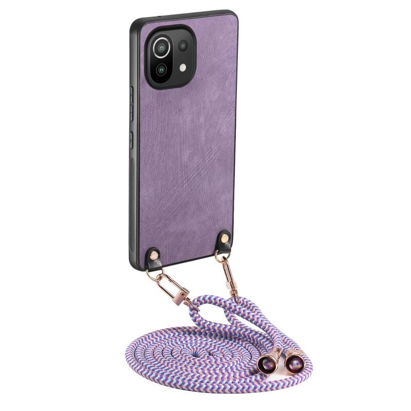 Για Xiaomi Mi 11 Lite εκλεκτής ποιότητας δέρμα PC πίσω κάλυψη υπόθεση τηλεφώνου με λουράκι σταυρού (μωβ)