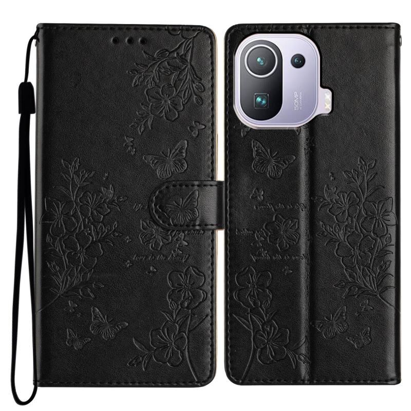 Θήκη τηλεφώνου Xiaomi Mi 11 Pro με δέρμα και σχέδια πεταλούδων και λουλουδιών (Χρυσό)