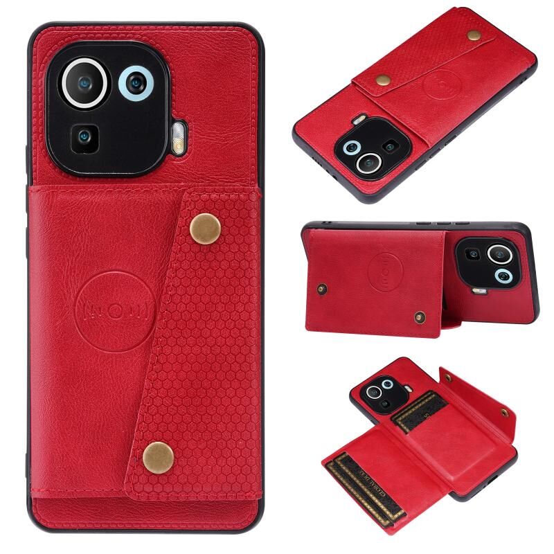 Για Xiaomi Mi 11 Pro Διπλή πόρπη PU + TPU Αδιάβροχη μαγνητική προστατευτική θήκη με υποδοχή κάρτας & υποδοχή (κόκκινο)