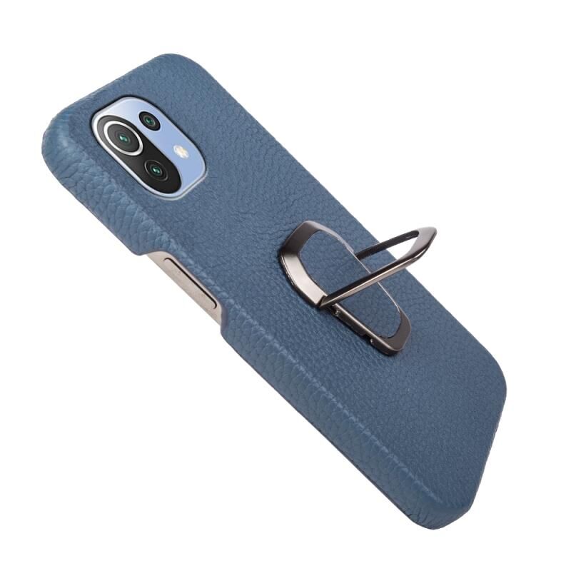 Θήκη τηλεφώνου Xiaomi Mi 11 Pro με δακτύλιο στήριξης, γνήσιο δέρμα με υφή λύτσι (Λευκό)
