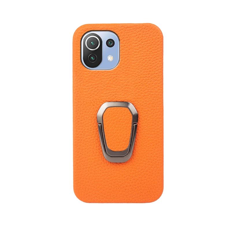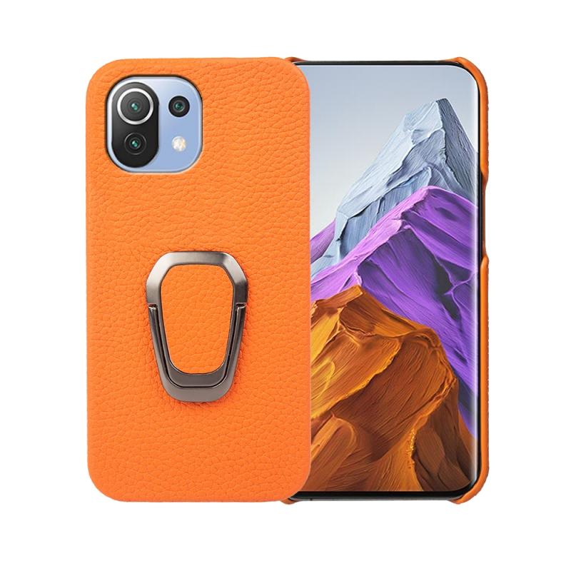 For Xiaomi Mi 11 Pro Ring Holder Litchi Texture Genuine Leather Phone Case(Yellow)