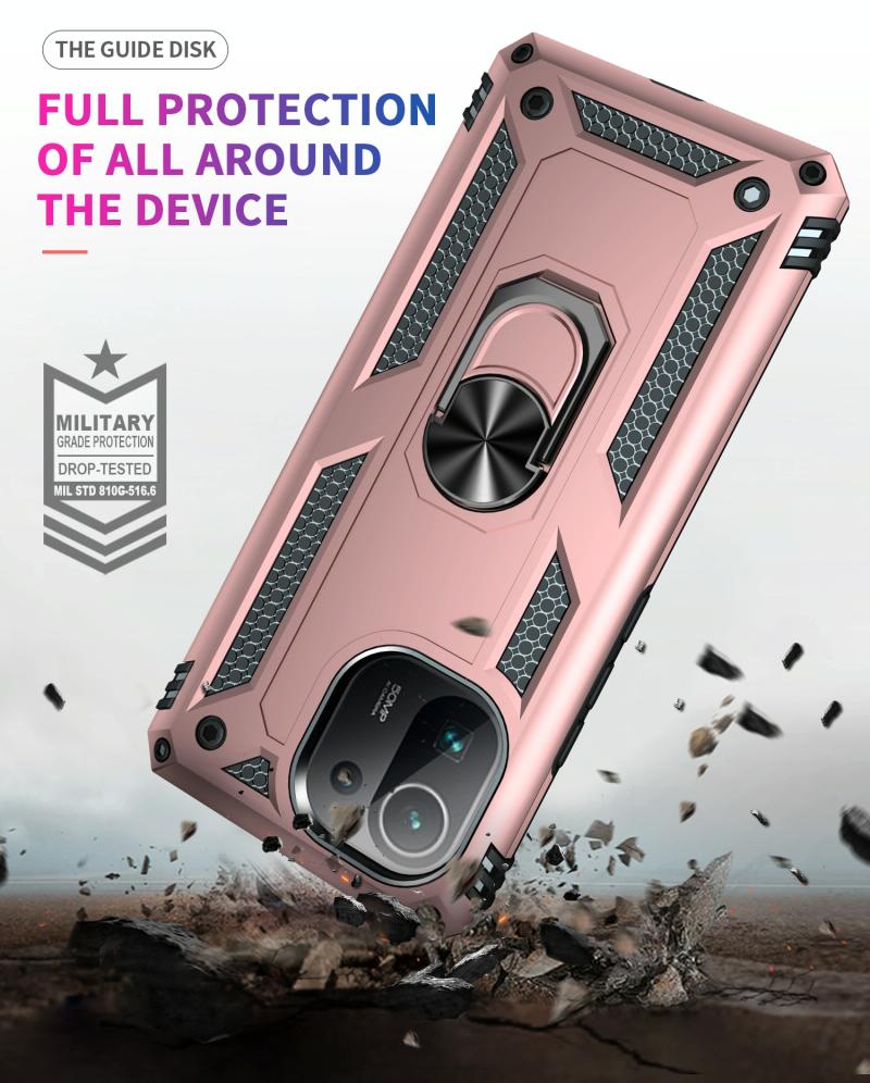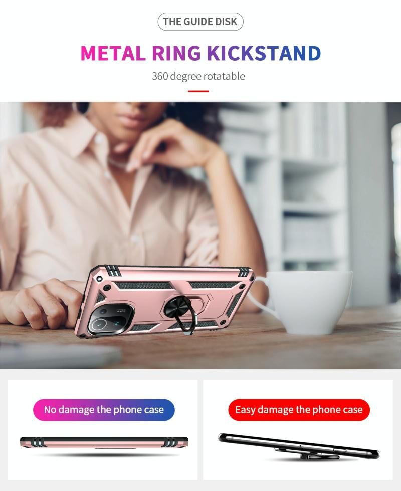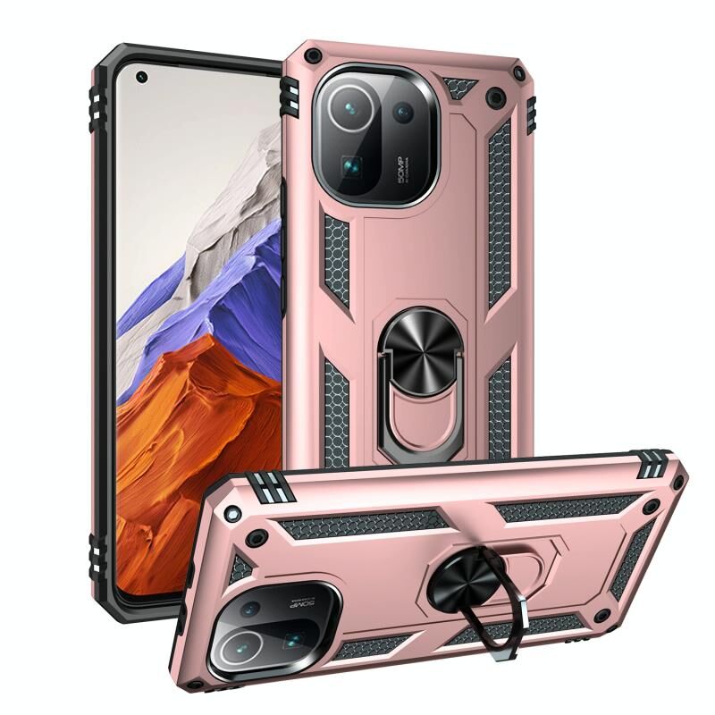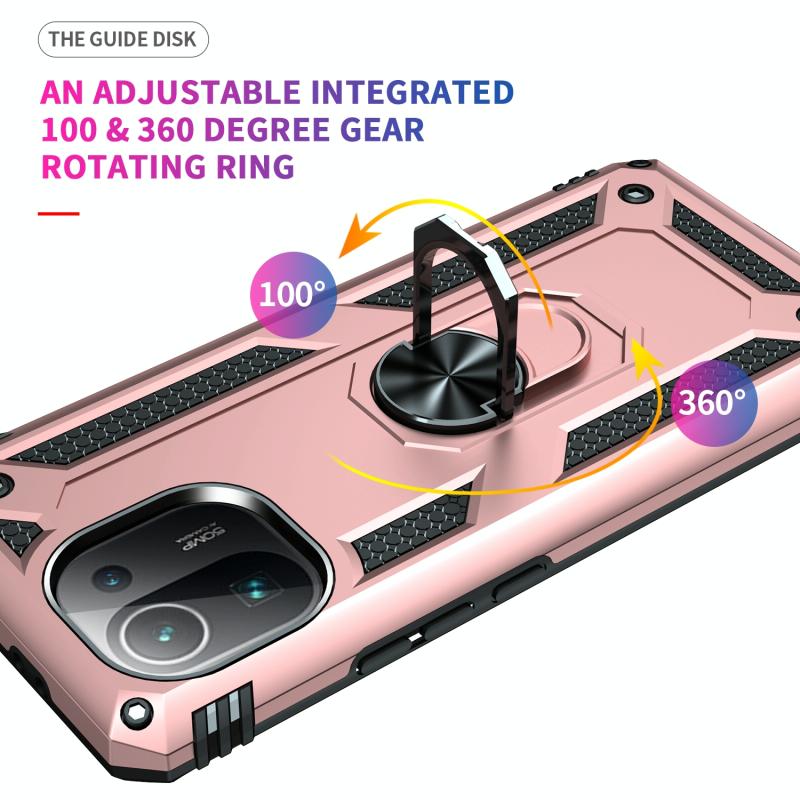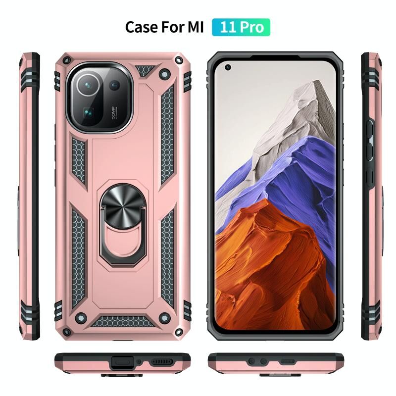 For Xiaomi Mi 11 Pro Shockproof TPU + PC Protective Case with 360 Degree Rotating Holder(Rose Gold)