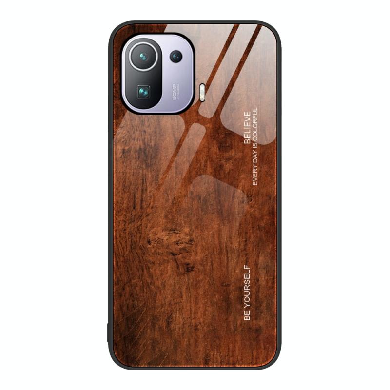 Θήκη Προστασίας για Xiaomi Mi 11 Pro με Υφή Ξύλου και Γυαλί (Σκούρο καφέ)