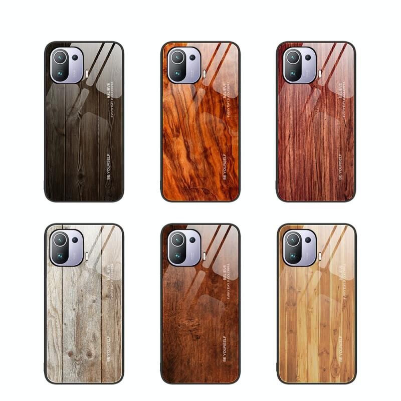 Θήκη Προστασίας για Xiaomi Mi 11 Pro με Υφή Ξύλου και Γυαλί (Γκρι)