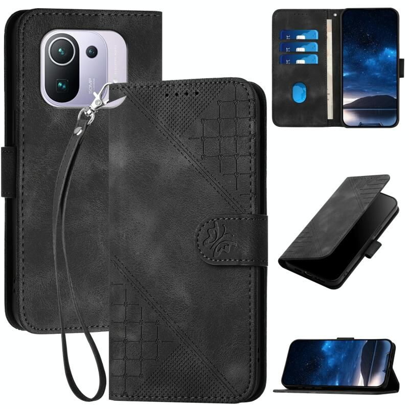 Θήκη τηλεφώνου δερμάτινη με ανάγλυφο σχέδιο πλέγματος και πεταλούδας για Xiaomi Mi 11 Pro YX0080 με κορδόνι (Σκούρο Μπλε)