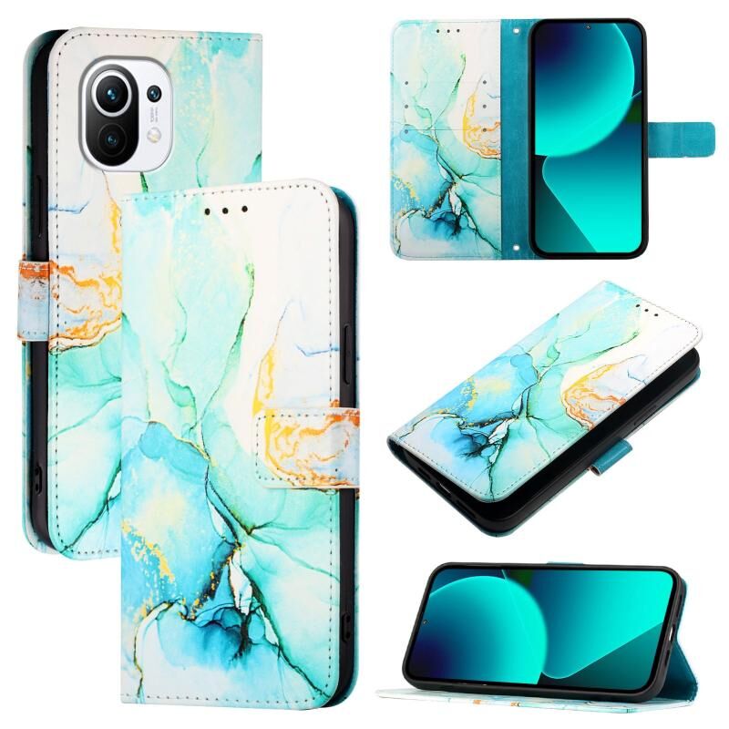 Θήκη τηλεφώνου Xiaomi Mi 11 PT003 με σχέδιο μαρμάρου, δερμάτινη, αναδιπλούμενη (πράσινο)