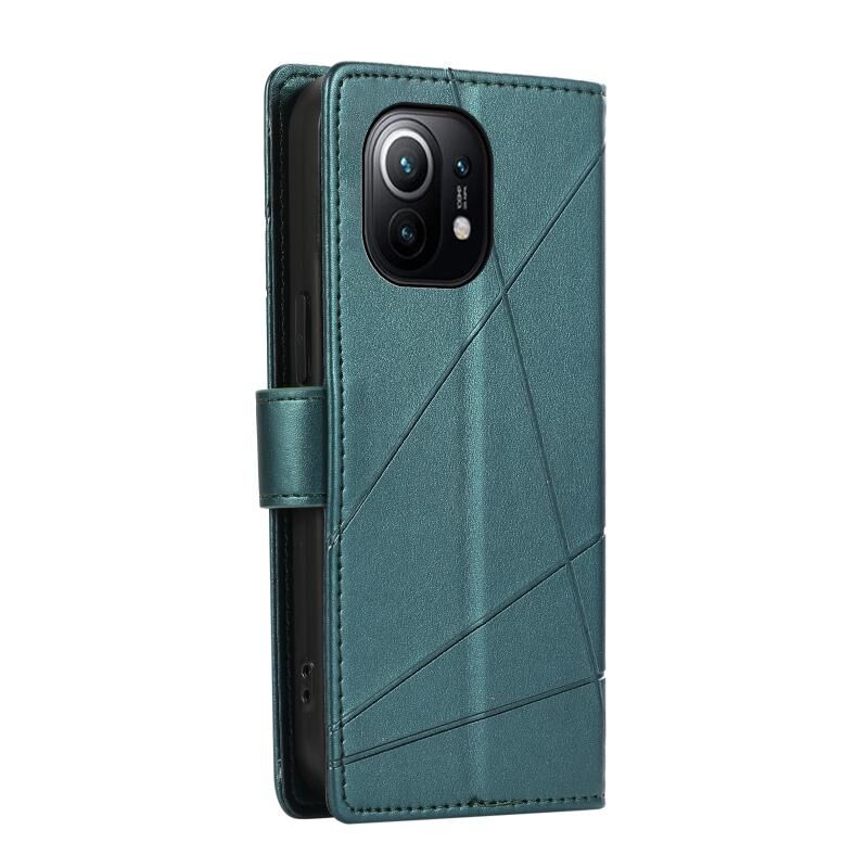Θήκη τηλεφώνου Xiaomi Mi 11 από γνήσιο δέρμα PU με ανάγλυφη υφή και λεπτομέρειες γραμμής (Μπλε)