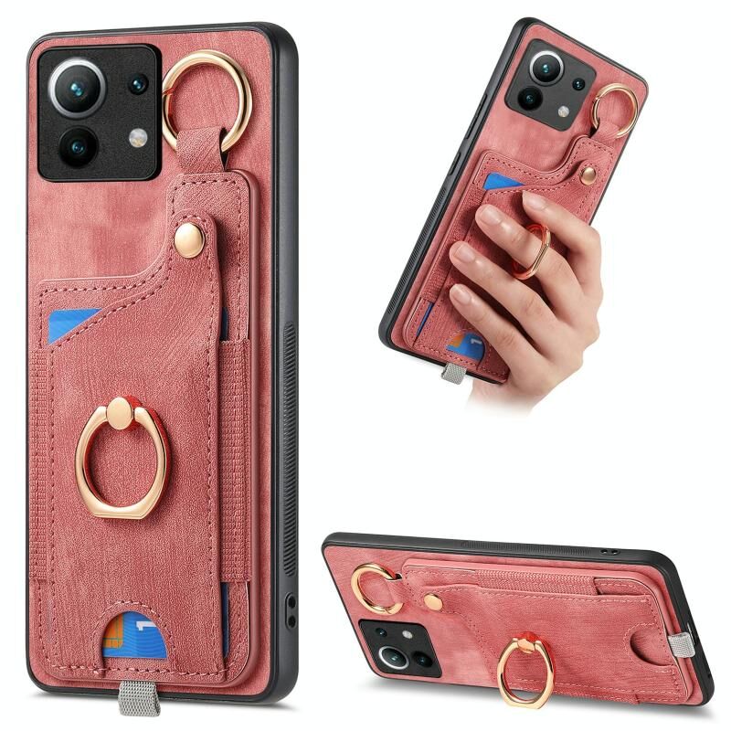 Για Xiaomi Mi 11 Ρετρό δέρμα αίσθηση δαχτυλίδι κάρτα τσάντα υπόθεση τηλεφώνου με Hang Loop (ρόζ)