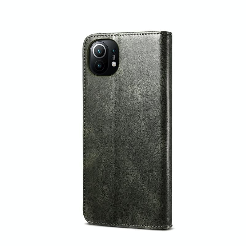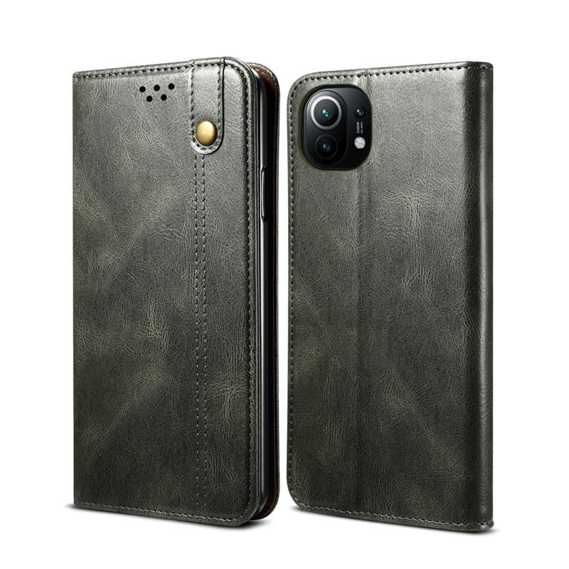 Για Xiaomi Mi 11 Απλή Θήκη Δέρματος Οριζόντιας Αναδίπλωσης με Υφή Crazy Horse και Θήκες για Κάρτες & Πορτοφόλι (Σκούρο πράσινο)