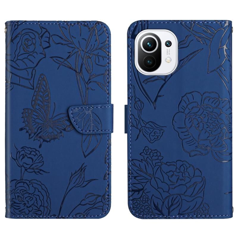 Θήκη τηλεφώνου Xiaomi Mi 11 με δερμάτινη υφή, ανάγλυφο σχέδιο πεταλούδας και παιώνιας (Κόκκινο)