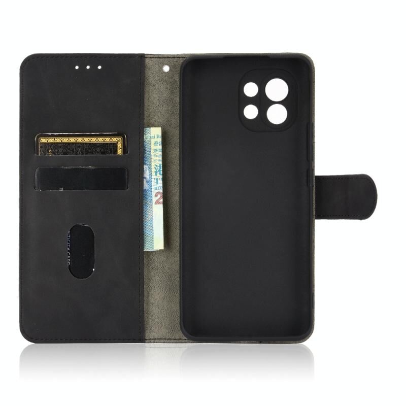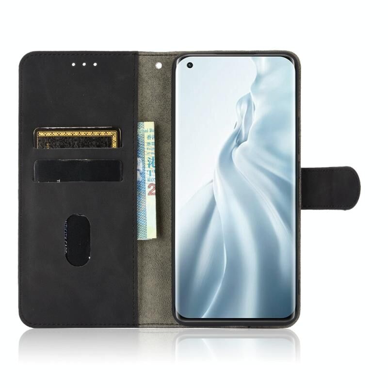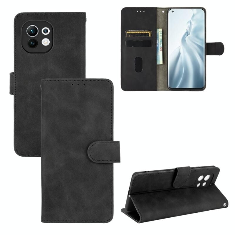 For Xiaomi Mi 11 Solid Color Skin Feel Magnetic Buckle Horizontal Flip Calf Texture PU Leather Case with Holder & Card Slots & Wallet(Black)