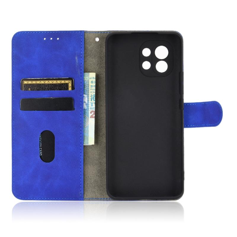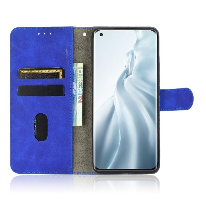 For Xiaomi Mi 11 Solid Color Skin Feel Magnetic Buckle Horizontal Flip Calf Texture PU Leather Case with Holder & Card Slots & Wallet(Blue)