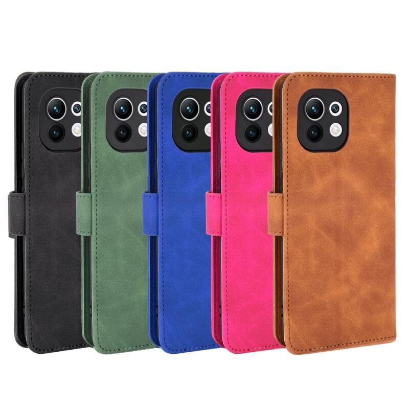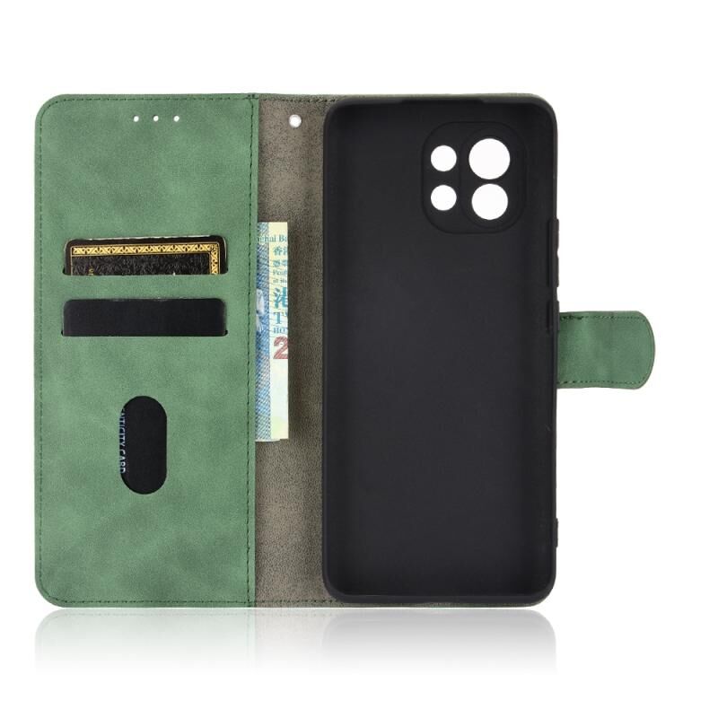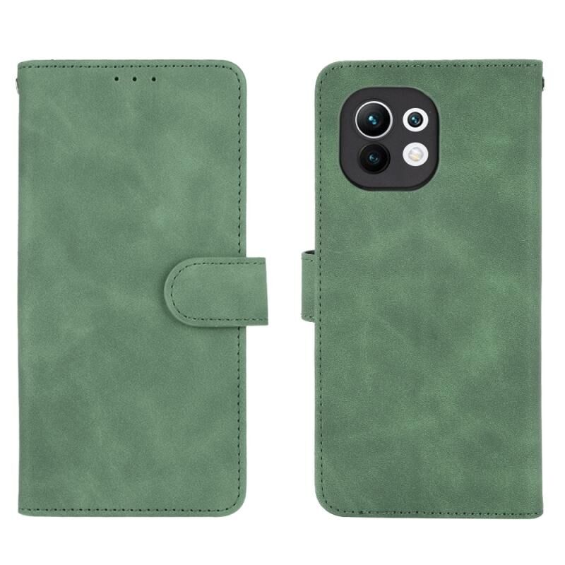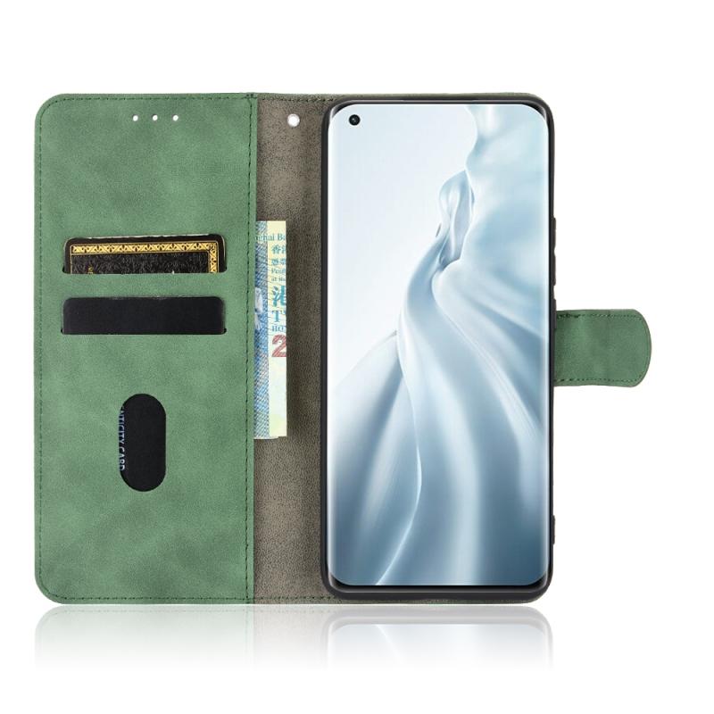 For Xiaomi Mi 11 Solid Color Skin Feel Magnetic Buckle Horizontal Flip Calf Texture PU Leather Case with Holder & Card Slots & Wallet(Green)